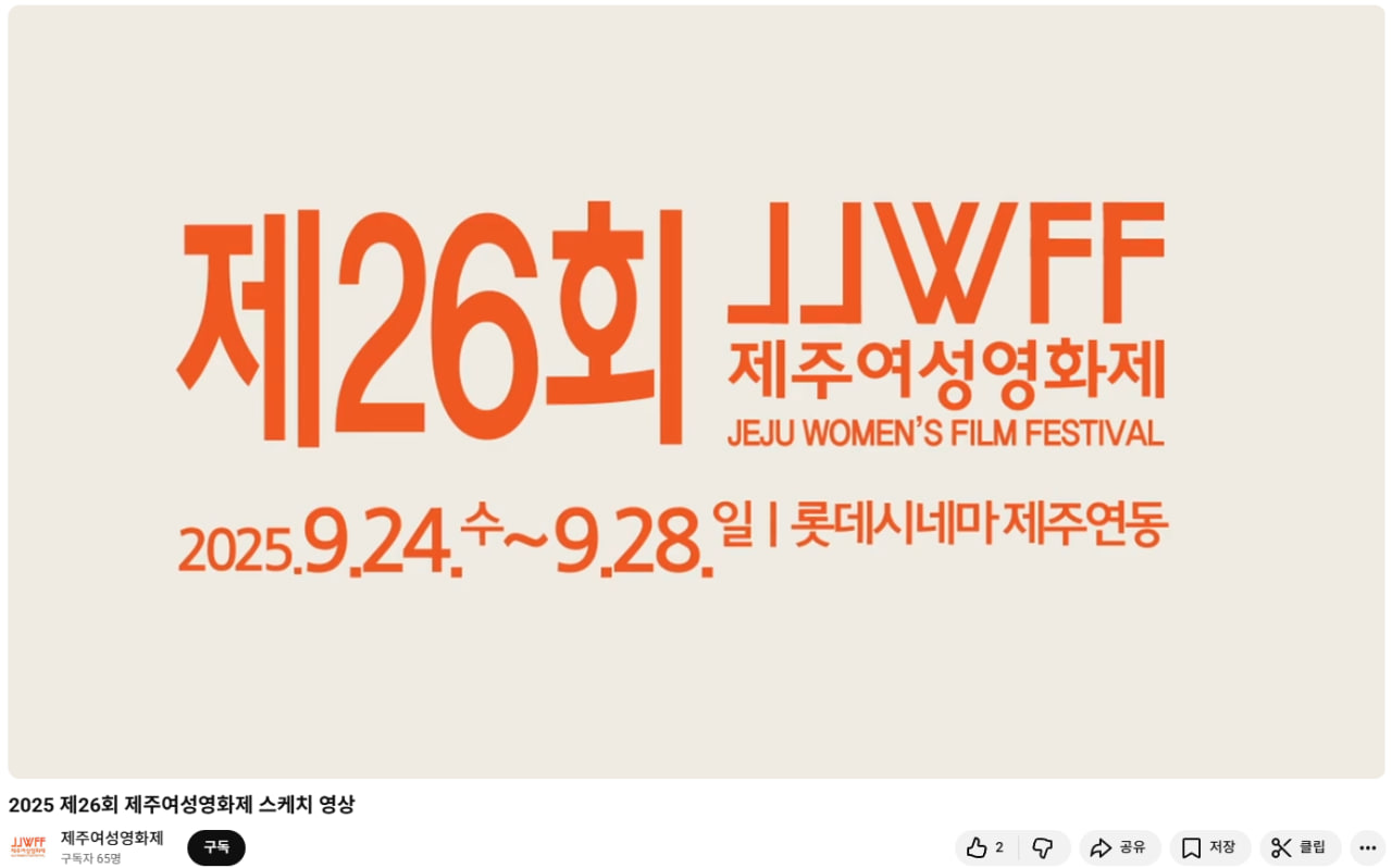 성황리에 막을 내린 제26회 제주여성영화제의 스케치영상은 제주여성영화제 유튜브에서 만나보실 수 있습니다.^^ 좋아요와 댓글, 구독과 알림설정(까지^^) 회원분들의 많은 관심과 응원이 필요로 합니다~! 많이많이 봐주세요~^^ |