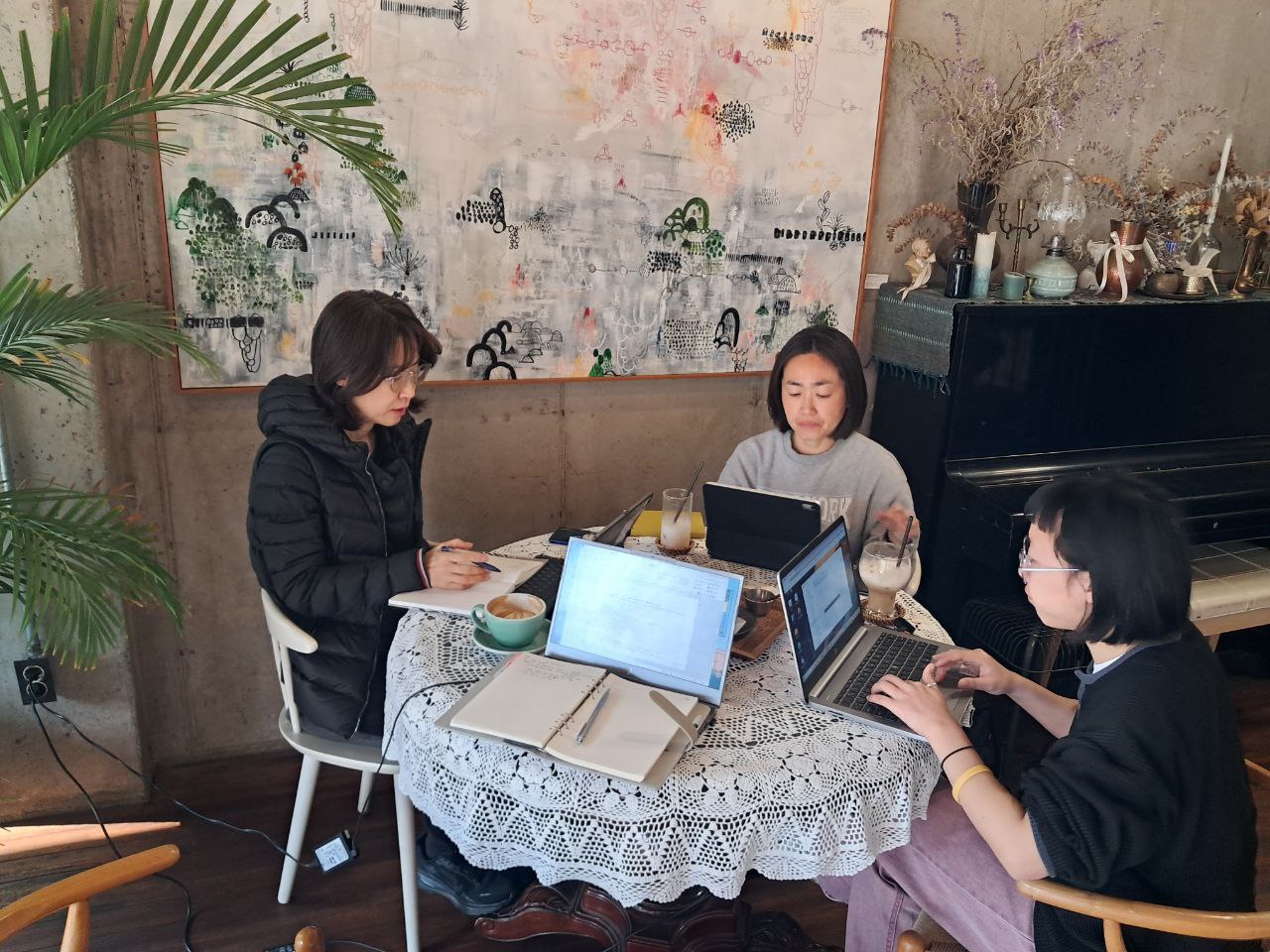 새롭게 시작하는 사무국장과 활동가, 아주 짧은 휴식기를 가지고 돌아온 문화팀장, 그리고 올해 연임을 맡게 된 대표까지. 이렇게 네 사람이 모여 새로운 한 해를 시작하며 서로의 의지를 다지는 시간을 가졌습니다. 서로를 더 깊이 알아가고, 우리가 어떤 방향을 향해 가고 있는지, 함께 무엇을 할 수 있는지, 또 그것을 어떻게 해나갈 수 있을지에 대해 밀도 있는 대화를 나누었습니다.
