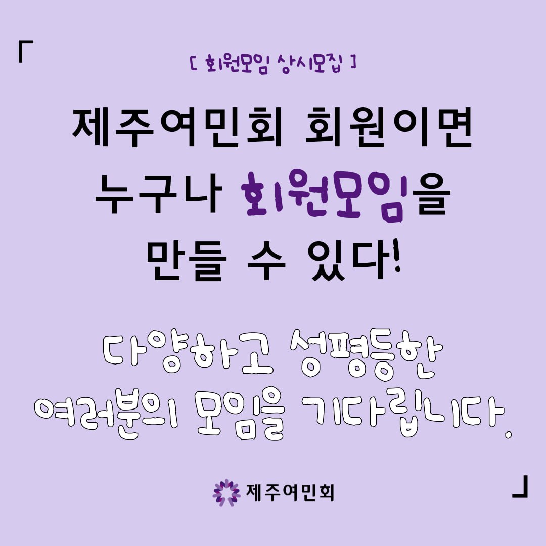 # 제주여민회에서 회원모임을 상시 모집합니다!